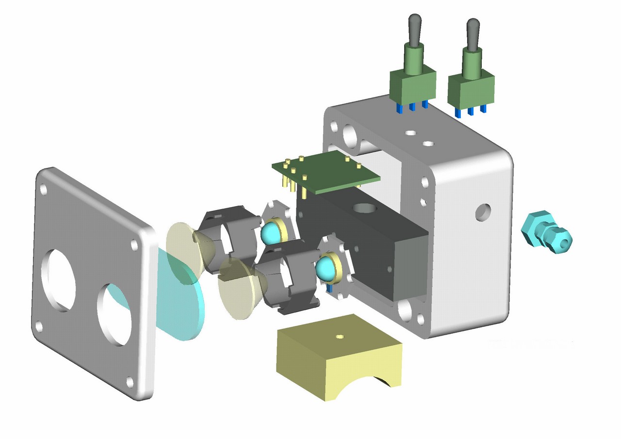 Le boîtier choisi est en aluminium afin de permettre la dissipation de la chaleur générée par les 2 LEDs de puissance.